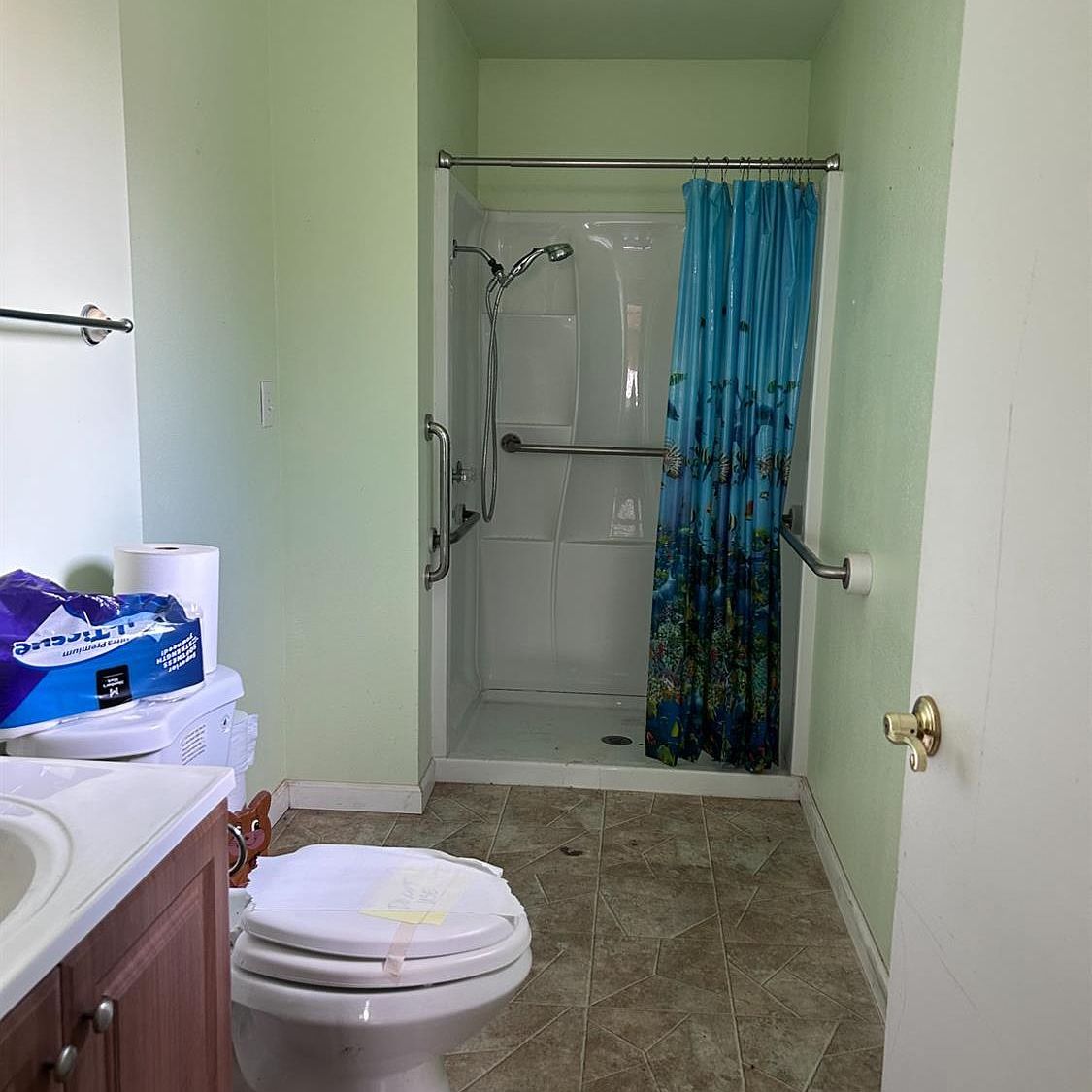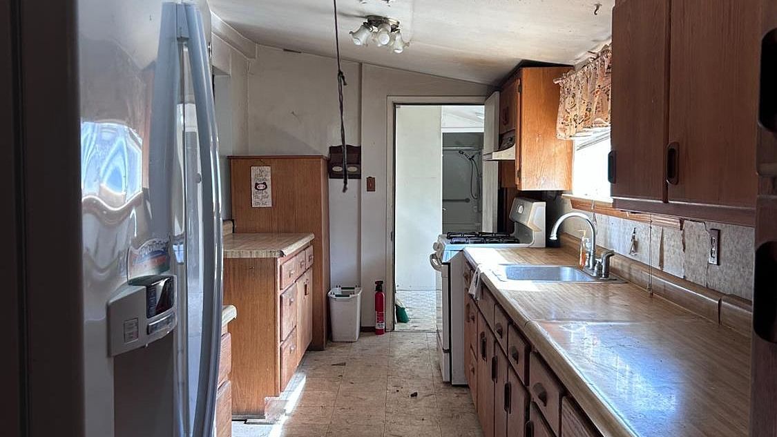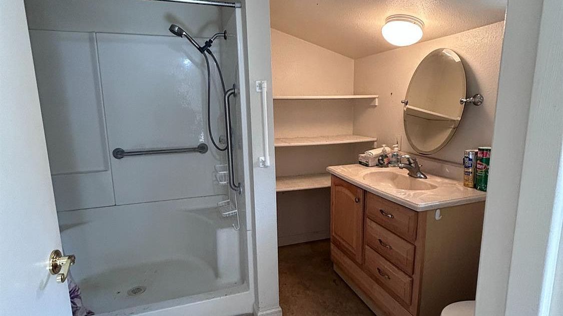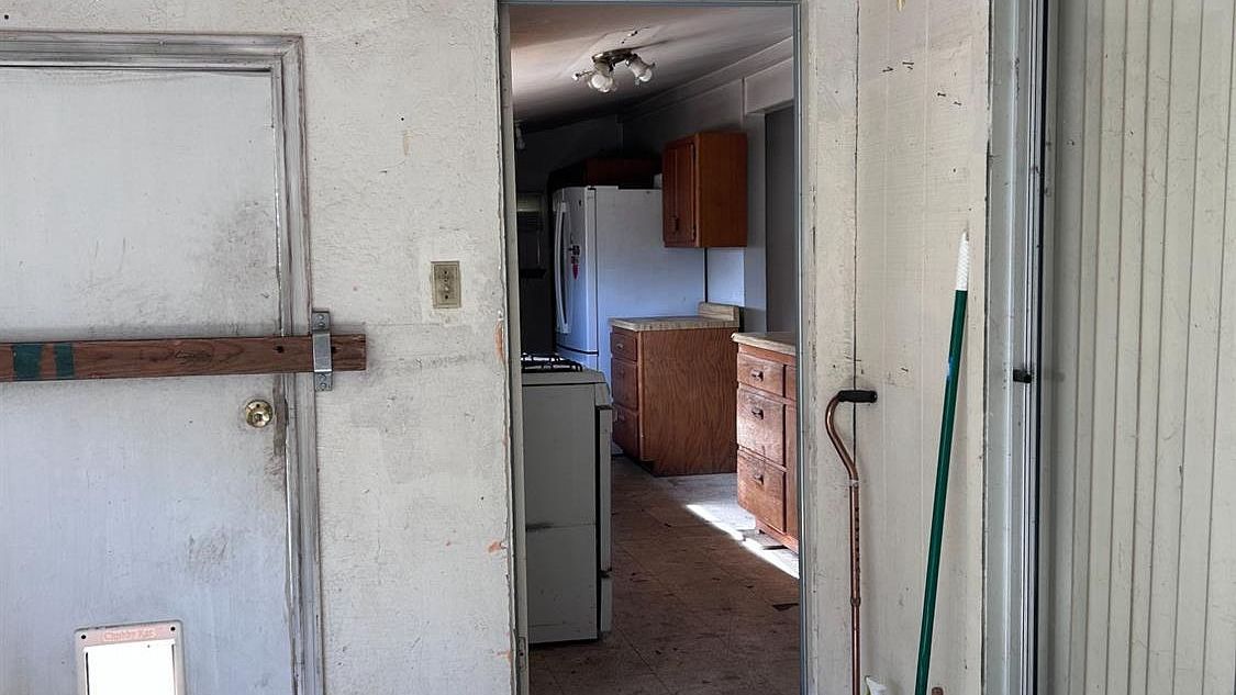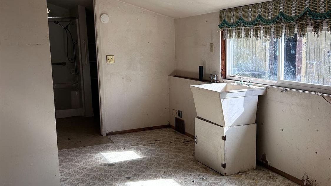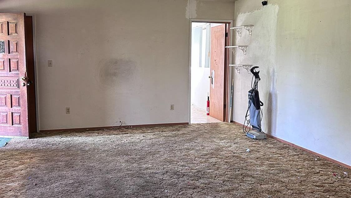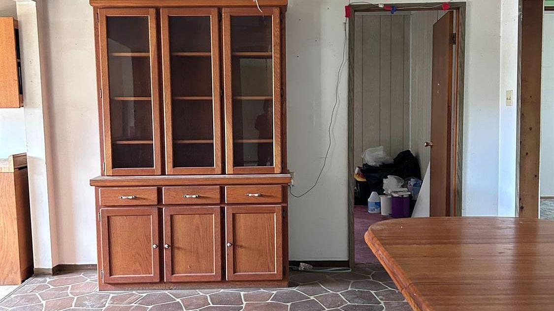 Distinctive flagstone flooring brings rustic charm to this welcoming dining area, where natural light flows through multiple doorways creating seamless connections throughout the home. The warm wood accents and open layout offer flexibility for everything from casual family meals to special celebrations, making this versatile space the heart of everyday living.